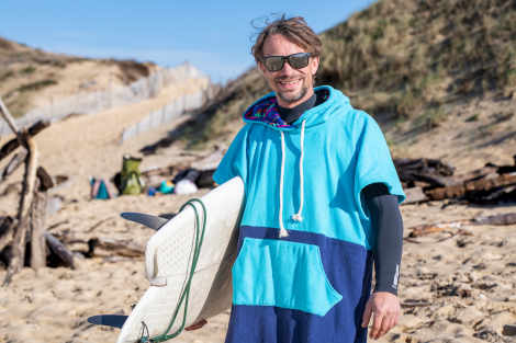 Nous vous présentons notre tout dernier design pour les amoureux de l'océan : le Poncho de Plage Bicolore