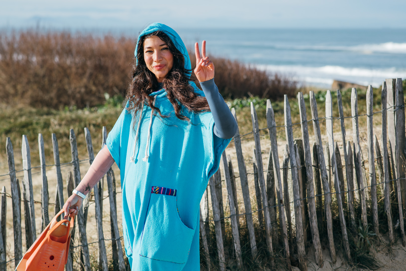 But the virtues of this beach poncho do not stop here, you can also fold it inside the hoody to carry as a stylish bag, leaving your hands free for carrying your surfboard/bodyboard or even your beloved ones!