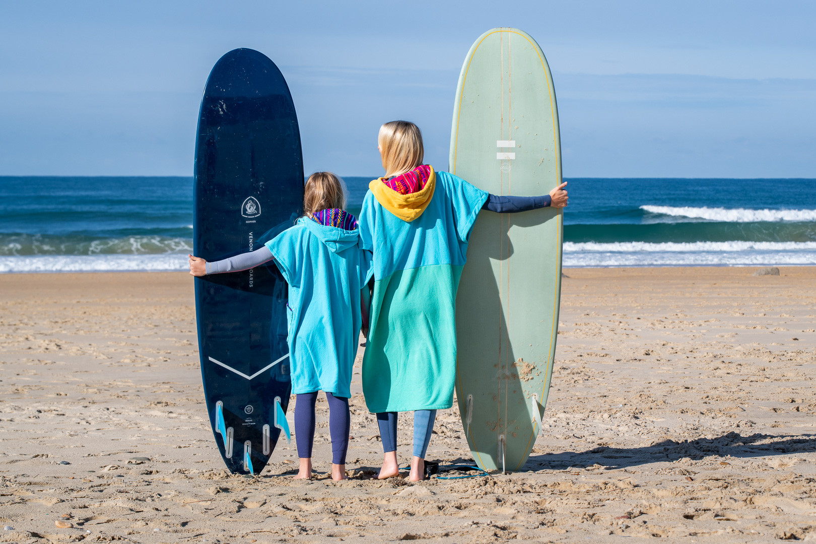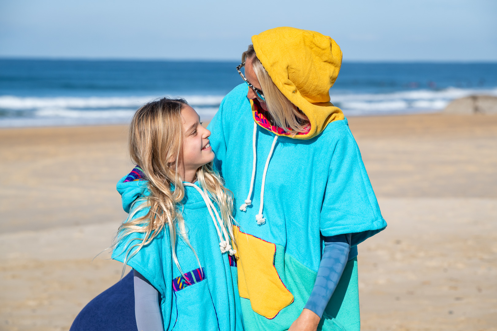 Our Kids surf poncho will help your child change clothes, stay dry, and keep warm after a water sports session. But the virtues of this hooded towel do not stop there, it is also cleverly designed to carry as a stylish bag to lighten the load on the way to the beach!